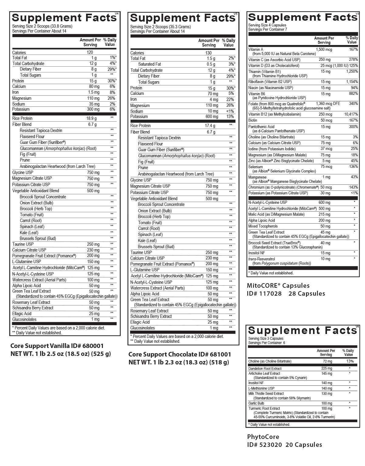 PhytoCore: 2-3 capsules two times per day or as recommended by your health care professional.