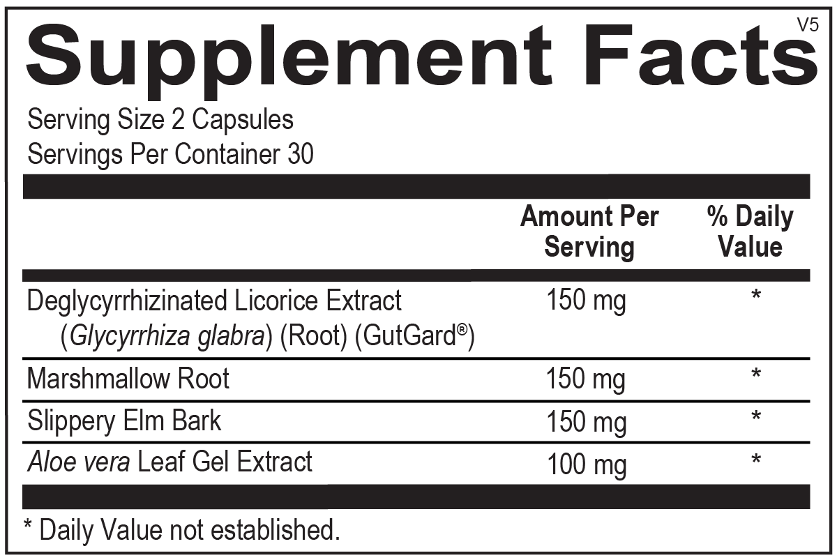 The formula includes GutGard®, a clinically studied form of deglycyrrhized licorice that provides improved control of the glycyrrhized content.