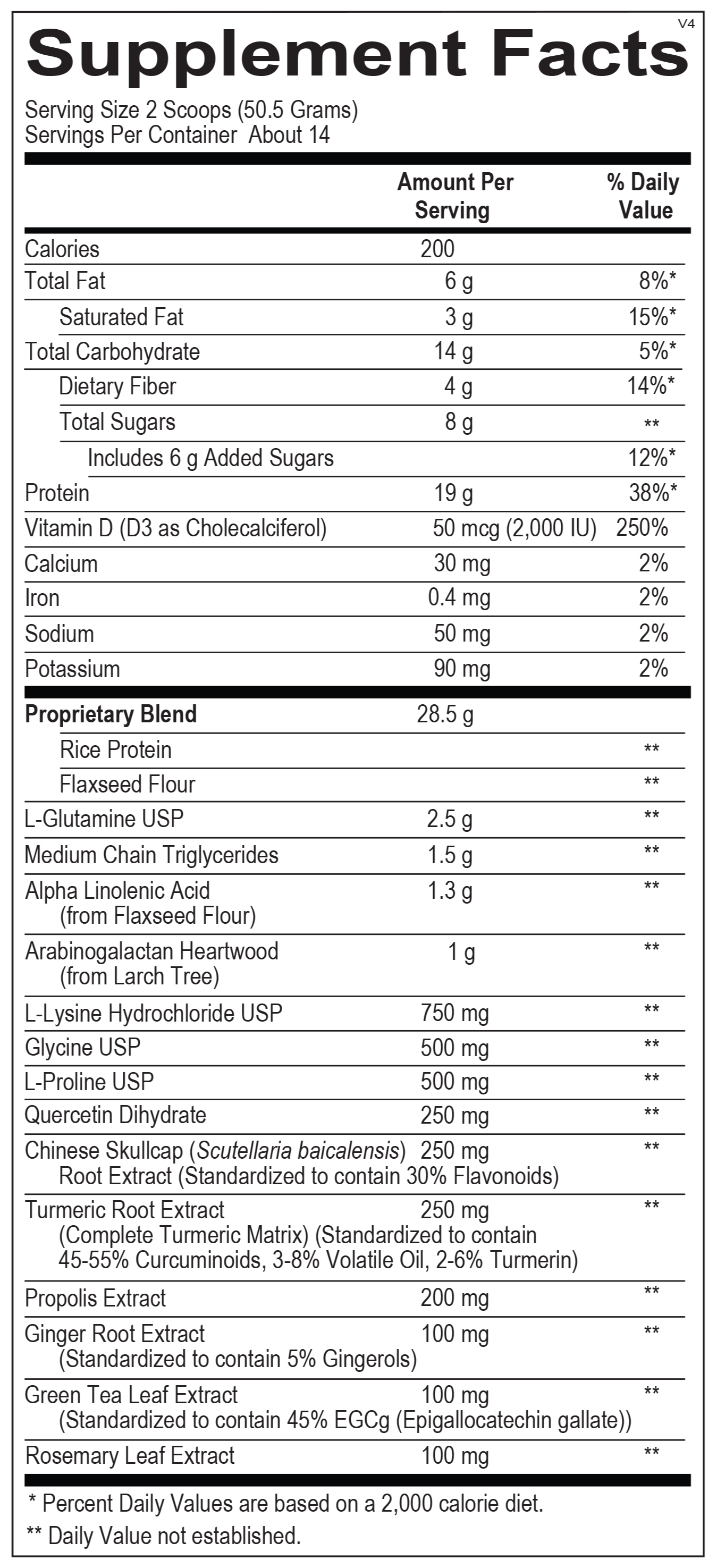 Mix 2 scoops of InflammaCORE® with 8-10 ounces of the beverage of your choice to the desired thickness, once daily or as recommended by your health care professional.