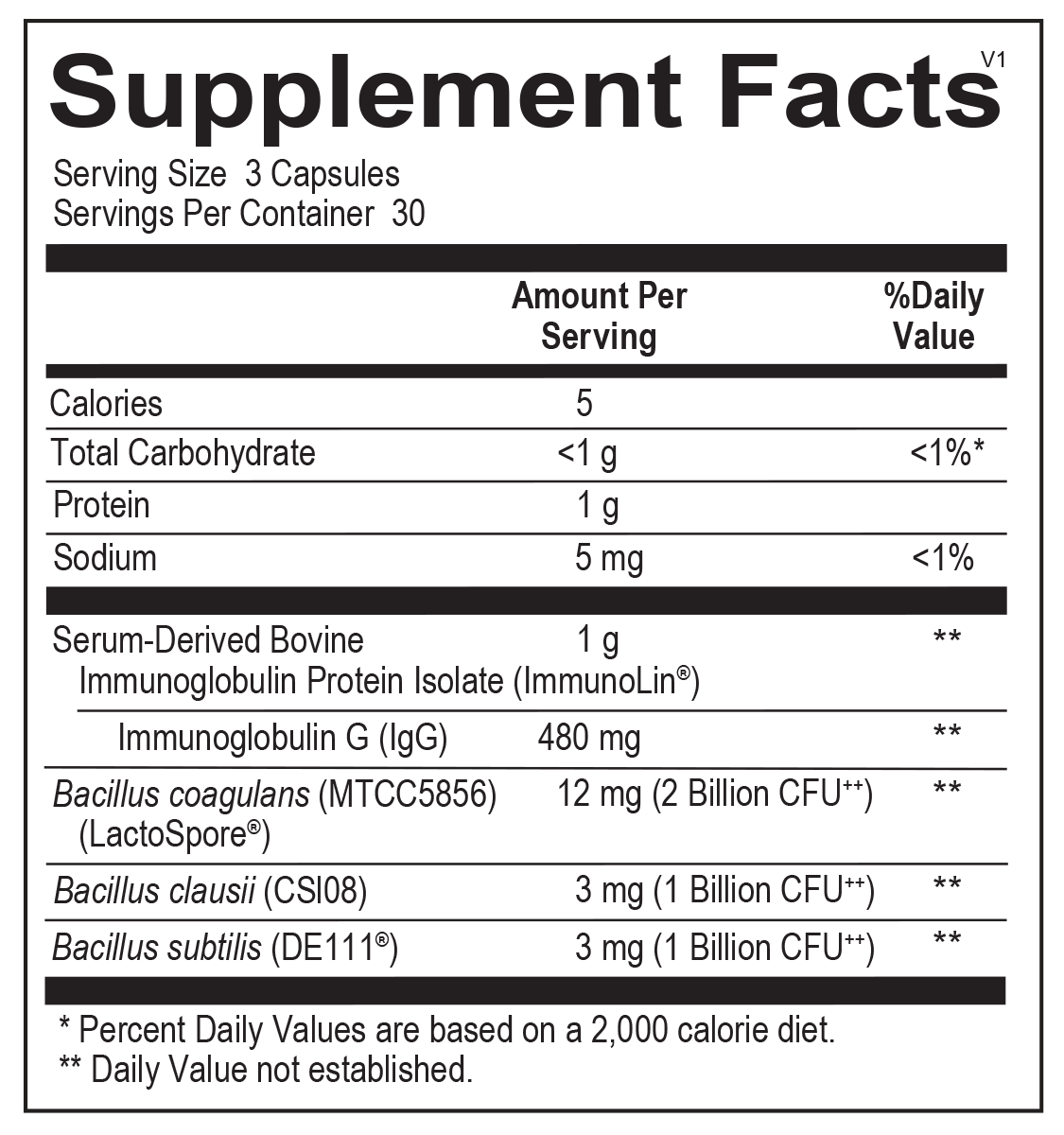 In the search for innovative ways to improve microbiome diversity, we have combined our blend of spore-forming probiotics alongside immunoglobulins uniquely shown to bind to bacteria and toxins, driving immune response. IgG helps to maintain a healthy intestinal immune system by binding a broad range of microbes and toxins within the gut lumen.