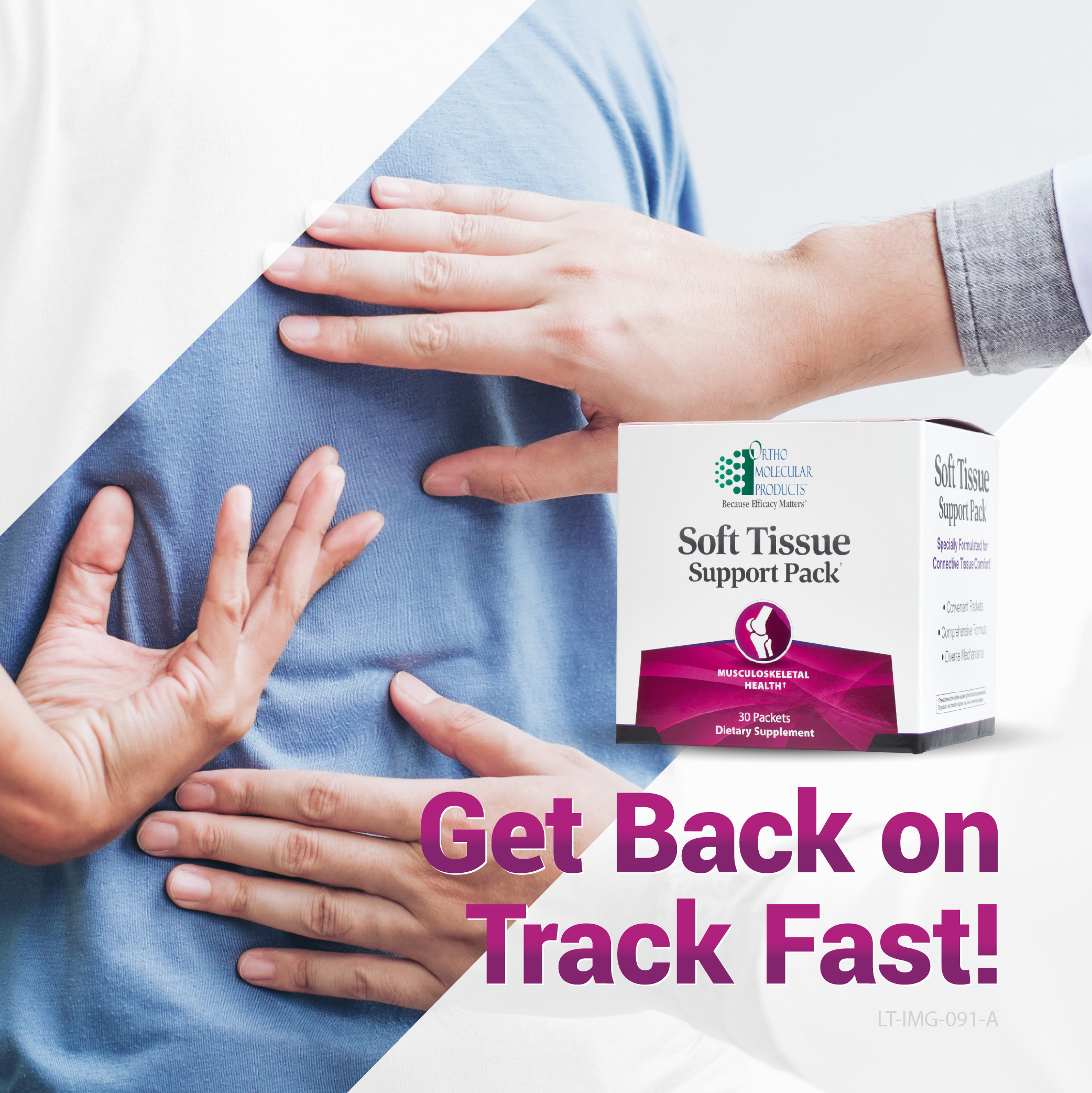 Soft Tissue Support Pack gets patients back on track fast! Inflammation is a natural part of the body’s immune response, a cascade triggered to protect the body and maintain normal tissue repair. Soft Tissue Support Pack provides a full spectrum of botanicals, enzymes and micronutrient factors to maintain normal inflammatory balance and address discomfort of ligaments and tendons from exercise. Soft Tissue Support Pack includes the following supplements: 2 Traumeric capsules, 3 Vascuzyme tablets, 2 GABAnol capsules and 1 C-Flav capsule for a pack of potent support. #chiropractor #softtissuesupportpack #orthomolecularproducts